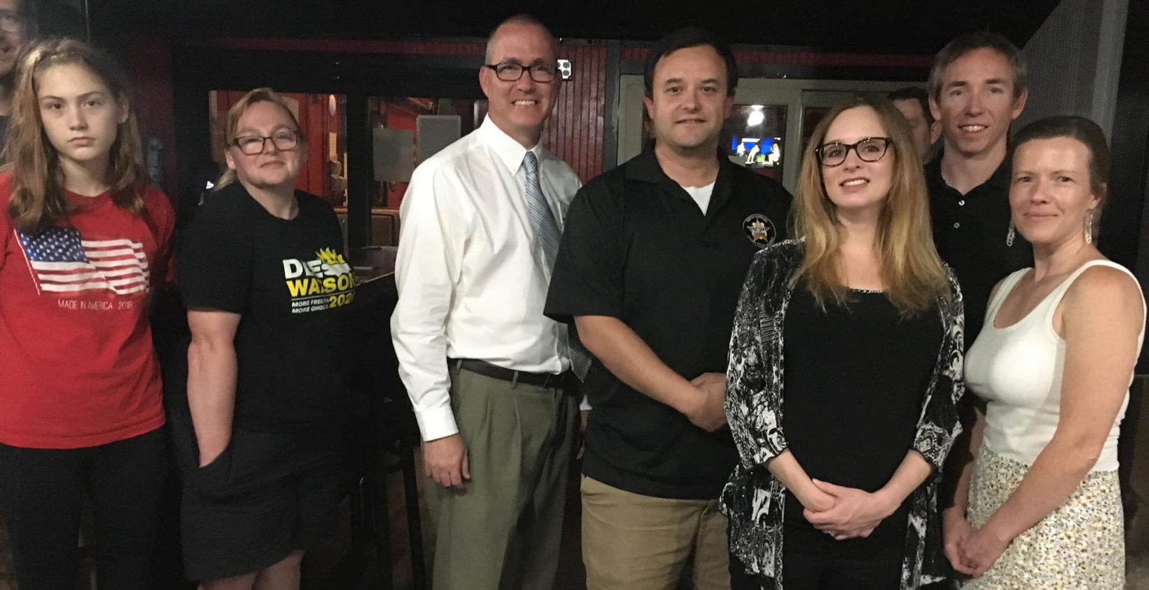 Some Wake RLC members photographed with that night's speaker (center L-R:) David Blackwelder and new members Dee Watson & Trey Allen! Trey Allen happens to be running for a spot on NC's Supreme Court.